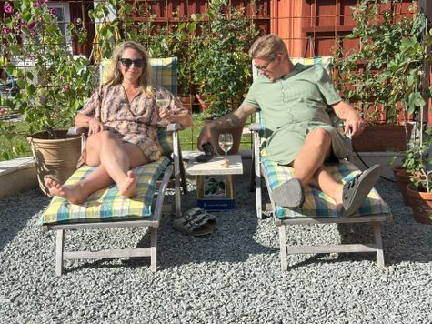 Närmaste granne är jag som värd och min sambo, och man bor Next Door till oss, som enda nattgäster i denna privata trädgård. Boendet ligger i nära anslutning till oss och våra övriga gårdshus. Vi har ändå lyckats skapa en privat sfär i och omkring stugan, tack vare en generös terrass och grönytor framför den.