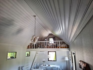 Huset rymmer upp till åtta gäster – sex vuxna och två barn – och har ett sovrum med dubbelsäng, ett sovrum med våningssäng och en bäddsoffa för två personer, samt två loft med en enkelsäng i vardera.