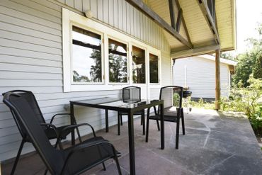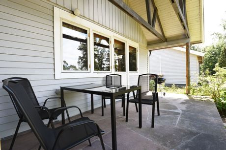 Medan barnen är och leker i trädgården kan ni passa på och njuta av solen på den härliga uteplatsen eller förbereda middagen på grillen.