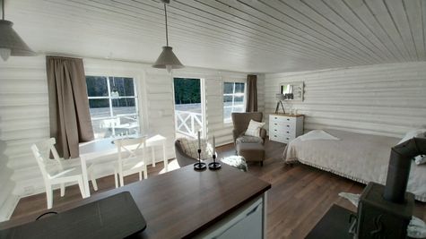 Vårt mysiga timmerhus för 2 personer ligger i ett vackert och avskilt läge på vår skogsgård i mellersta Sverige/Bergslagen i den natursköna regionen Örebro län. Inbäddat i ett idylliskt landskap med utsikt över skog och äng. Sjön Björksjön ligger alldeles i närheten och kan delvis ses från tomten.