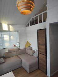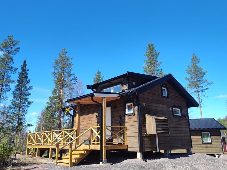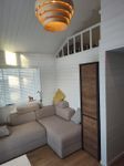 Inuti är stugan varm och lyxigt inredd med naturmaterial, mjuka nyanser och högkvalitativ finish. Allt är utformat för att du ska känna dig bekväm: en mysig sittgrupp, ett fullt utrustat kök, smart planlösning och en känsla av både rymd och trygghet.
