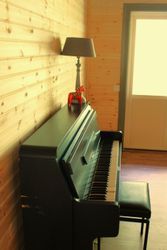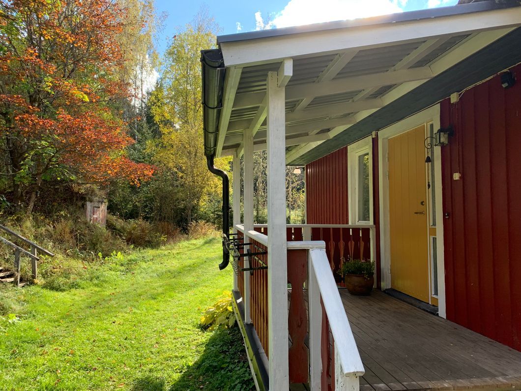 Det nyrenoverade semesterhuset är helt i ett plan. Du kommer in via hallen och möts direkt av det rymliga vardagsrummet med vedkamin, piano och altandörrar som leder ut till verandan. Till höger om hallen finns det öppna köket med en mysig matplats. Här kopplar du verkligen av – det finns ingen wifi eller TV. Däremot finns böcker, spel och pussel.