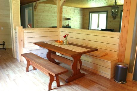 Njut av ett rymligt semesterhus omgivet av skog och kullar. Huset har ett mysigt vardagsrum, ett modernt öppet kök, två bekväma sovrum och ett badrum med regndusch. Sänglinne, handdukar och slutstädning ingår i priset. För extra bekvämlighet kan du mot en avgift välja mellan frukost, picknick, trerättersmiddag eller en wildlife-tur. I närheten finns en vacker sjö, perfekt för bad, fiske eller bara avkoppling vid vattnet.