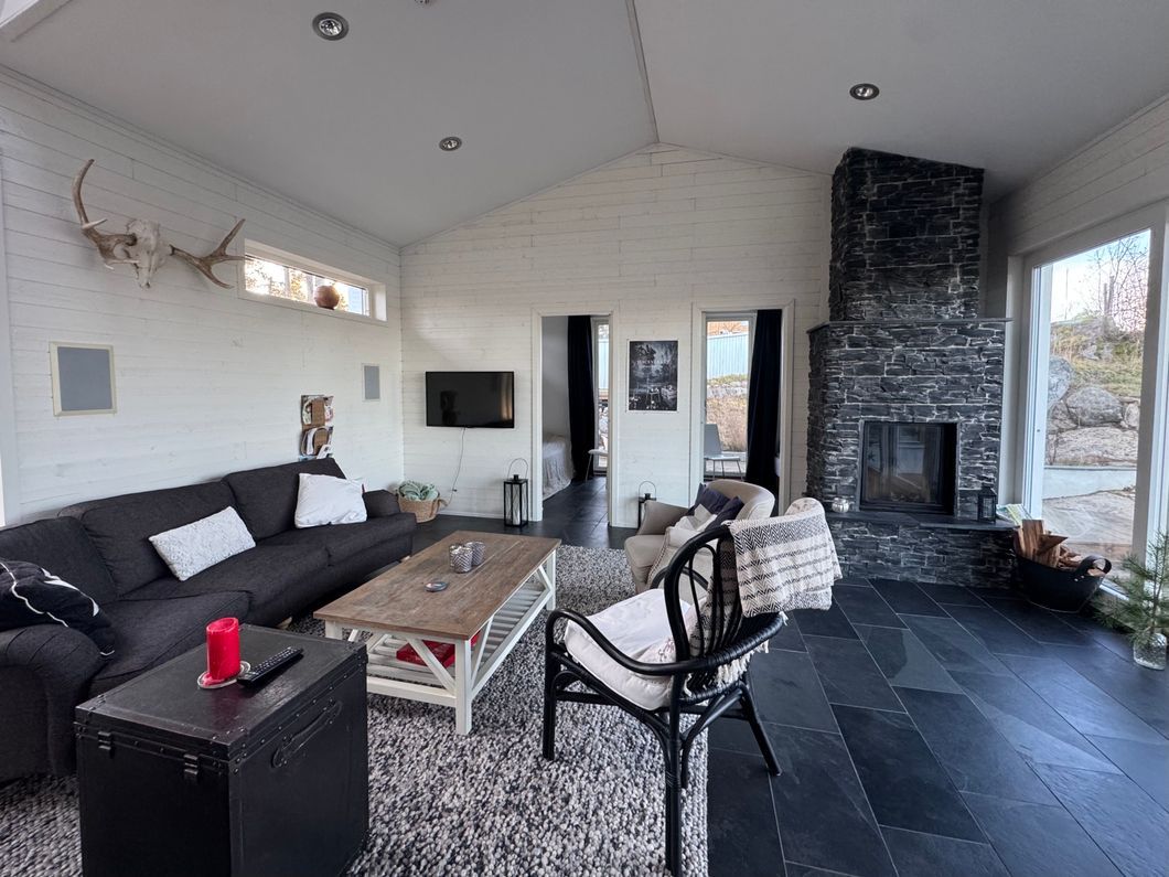 Huset har en öppen och luftig planlösning med stora fönsterpartier som släpper in rikligt med ljus och suddar ut gränsen mellan inne och ute. Från matplatsen når du den generösa altanen med utsikt över vattnet. Perfekt för långa middagar, grillkvällar och lata dagar i solen.