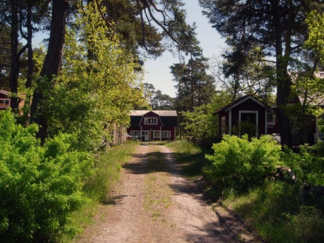 Huset ligger på en barnvänlig naturtomt strax ovanför den lilla fiskehamnen, just där den vidsträcka barnvänliga sandstranden och det berömda raukpartiet möts.