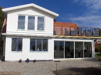 Strandvillan har ett fantastiskt läge endast ett stenkast från havet. Huset har totalrenoverats och är ett modernt hus med en mycket hög standard. Den har 8 bäddplatser så det passar också bra för två familjer som vill bo tillsammans.