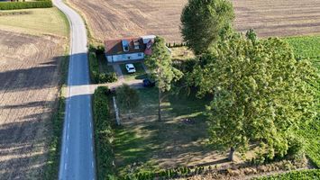 Liten stuga i lugnt område, nära sjö och kor. Badbrygga.