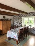 Unser renoviertes Fachwerkhaus aus dem 19. Jahrhundert mit viel Charme und mit Balken in der Decke.
