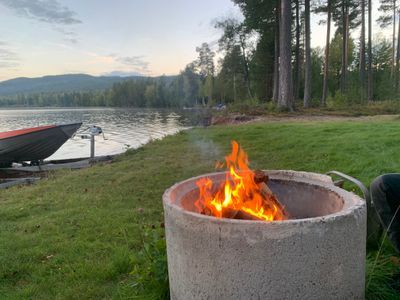 Strand mit dem Boot und Angeln und Windschutz mit Grill.