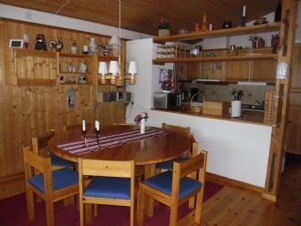 En ljus och välplanerad stuga med mycket rymd och hög standard. Tre sovrum med 6+2 bäddar. Ett rum med dubbelsäng. Två rum med våningssängar (120 cm bredd i underbädden). Braskamin, WIFI ,TV med Boxer kanalpaket, diskmaskin, mikrovågsugn, bastu med omklädningsrum och separat dusch. Välpreparerade skidspår utanför stugknuten, 2,5km med bil eller gratis skidbuss till backarna.