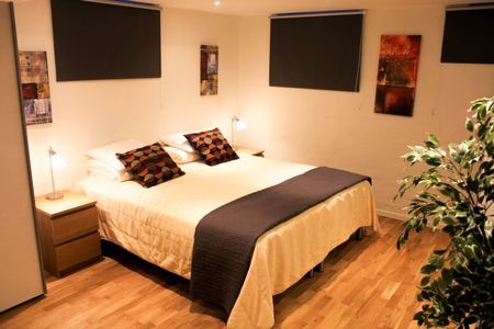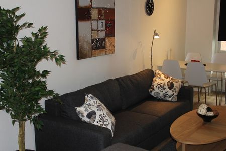 Komplett eingerichtete moderne Wohnung mit einem Schlafzimmer, mit bis zu zwei Betten.