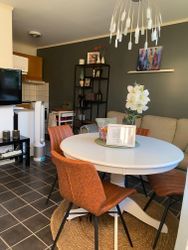 Die Wohnfläche beträgt ca. 35 m2. Küche und Wohnzimmer in offener Raumlösung, mit Sitzmöbel, TV, Esstisch mit Platz für 4 Personen sowie Küchenteil mit E-Kochplatten, Mikrowelle und Kühlschrank. Ein Schlafzimmer mit Etagenbett (geeignet für Kinder). Schlafzimmer mit Doppelbett. Badezimmer mit Dusche, WC und Waschmaschine. Außenplatz mit Gartenmöbel. Rauchen nicht erlaubt. Haustiere dürfen nicht mitgebracht werden. Wir wohnen auch in der Villa. Bettwäsche, Handtücher, Mahlzeiten und die Endreinigung sind nicht inbegriffen. (Die Möbel und Einrichtung können von den Bildern (zum positiven) abweichen)