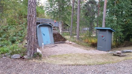 In einem Nebengebäude ist die Sauna und Ruheraum sowie der Holzvorrat untergebracht. Die Sauna wird mit Holz geheizt und hat eine Möglichkeit Wasser zu erhitzen. Abduschen und Waschen aus dem Eimer.