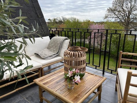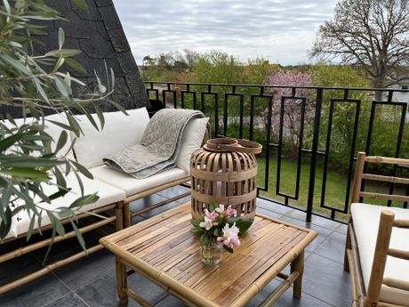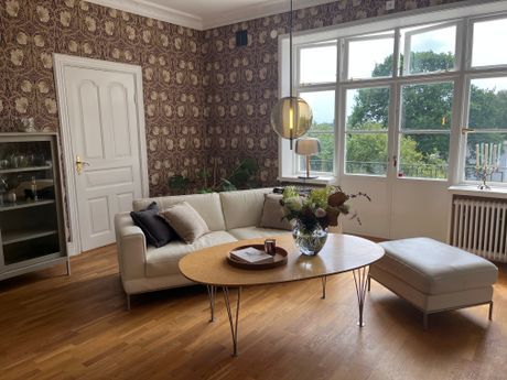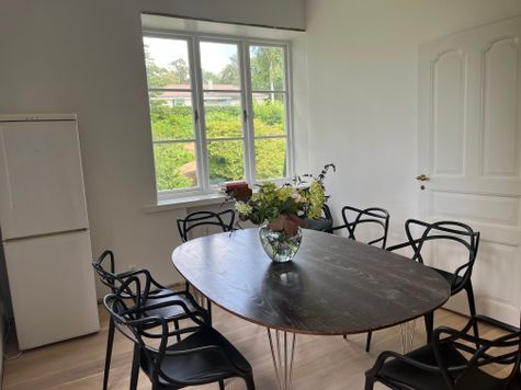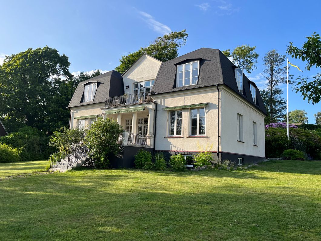 Villa Hoppet dating from 1916 carries with it charm and history and offers a wonderful view of Skälderviksbukten and Kullahalvön, only 500 m from the 6 km long beach. The top floor of the house is available 150 sqm, with three separate bedrooms, each about 25 sqm.Bedroom one, offers a tranquility towards the courtyard and garden with a 140 cm wide bed with space for two.Bedroom two, with a view of the garden pond and Skälderviksbukten and villa Torshall, built at the same time as Villa Hoppet.Bedroom three has offers a magical view of Skälderviksbukten and the garden with its pond. A large living room opens onto a balcony which also offers a view of the pond and Skälderviksbukten. There is space for a dining table with seating for 6 people, as well as a sofa and TV. There is also a fridge, microwave and kettle to consume simple meals such as breakfast, etc. On the balcony you can enjoy the nice view of the sea, with sofa table and armchairs. There are two large bathrooms. If you instead want a little more peace and quiet, you can take a seat at the round stone table with parasol in the courtyard with garden, barbecue facilities are also offered here.There are many nice restaurants close by both in Skälderviken and in Ängelholm such as Klitterhus, Carl Fredrik's restaurant, and Hamnkrogen.If you want soup in the sea or along the Röhne river, you can borrow the house soups. Many fine golf courses are available near Skälderviken such as, Åkagården, Båstad, Torekov, Ängelholm and Söderåsen. Sheets, towels and final cleaning are included in the rent
