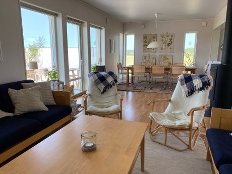 Herzlich Willkommen in unsere friedliche Idylle im Norden der Provinz Halland. Hier haben Sie Felder, das Meer und ein Naturreservat vor der Haustür, drinnen viel Platz zum Zusammensein und Tag und Nacht viel Ruhe.