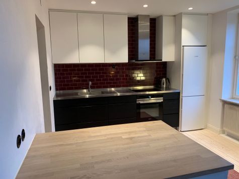 On the ground floor there are two rooms in file as well as an open plan kitchen. In the living room there are two sofas and a TV where you can stream Netflix and HBO in the evenings. On the second floor you will find the house's three bedrooms and two bathrooms. In the master bedroom there is a King Size bed and in the two smaller bedrooms each bed is 90 cm. I also keep two thick extra mattresses in the basement if needed. In the basement you will find the laundry room with washing machine and dryer.