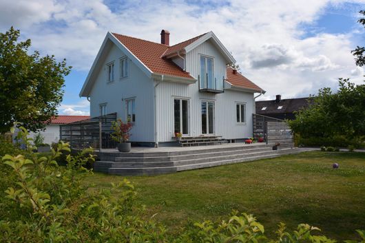 Inside the entrance there is a hall that leads to the family room and a staircase up to the 2nd floor, there is also a bathroom with shower and toilet. Upstairs there are 3 bedrooms and a living room with TV, there is also a toilet with shower. 2 bedrooms with 160 cm, double bed, and 1 bedroom with 2 x 105 cm beds. Lush garden with barbecue and patio/balcony. The house is adjacent to Sallebergsvägen, which is the road that leads into the village and the road to the beach, approx. 1200 meters away.