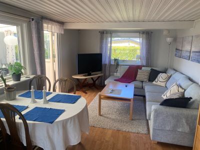 Huset, som erbjuder 4 + 2 bäddar, är ca 60 kvm stort. Därutöver finns ett inglasat uterum på 15 kvm. Det finns två sovrum, ett med dubbelsäng och ett med en Hemnes bäddsoffa som går att nyttja antingen som dubbelsäng (160*200 cm) eller enkelsäng. I vardagsrummet finns två enklare extrasängar som kan fällas ut.
