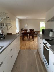 Lägenheten har ca100 kvm som är fördelat på två plan. På bottenvåning finns toalett med tvättmaskin, kök och allrum. Ovanvåningen har två sovrum, ett allrum och toalett/dusch. Det finns 7 bäddar och 2 extrasängar. Lägenheten har en egen uteplats med mäktig utsikt över hav och fält med eftermiddags- och kvällssol.