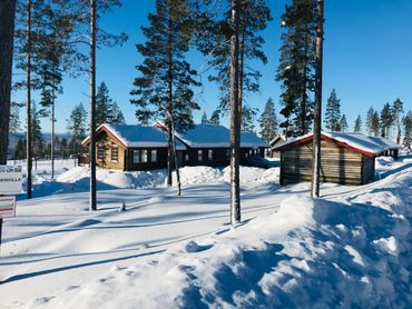 Restaurant, Rezeption und Minilivs sowie das neue Restaurant Mossas Kåta am Sessellift.