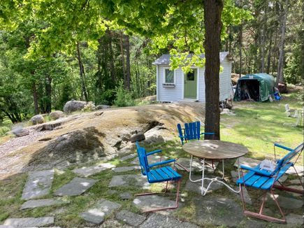 We rent out our summer houses, which together form a whole. They are located on a small island, Södra Lagnö, between Ingarö and Värmdö close to the archipelago of Stockholm. You get to the island with our boat, so you must have boating experience. The bus from Stockholm stops at the marina (430X), but your own car is recommended. There is no shop on the island, so you have to buy what you need to eat with you. The houses are located close to each other on a large plot with basically no visibility. The site is partly mountainous, but the houses are on a flat surface. They consist of a friggebod 15 sqm (bedroom) with a 140 bed, a newly built attic house 25 sqm (living room) with sofa bed and convertible sofa and another house 20 sqm (kitchen) fully equipped with dishwasher, fridge/freezer, oven, microwave and hotplates and with seating for 4 - 6 people. The living room and kitchen are connected by a spacious terrace with a dining area. Newly built, fresh outdoor terrace and outdoor shower available. Within walking distance of the grounds are two public child-friendly swimming areas and a nature reserve where a herd of sheep keeps the landscape open. There are usually plenty of lingonberries, blueberries and mushrooms in the forests. Nearby on the mainland are two golf courses and two shopping centres.