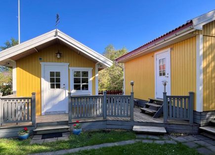 På tomten finns en gäststuga som rymmer ytterligare 4 bäddar i form av två våningssängar (80 och 90 cm breda sängar). Garderob och byrå finns för förvaring av kläder och tillhörigheter under vistelsen. Det finns indragen el men inget vatten eller toalett i gäststugan. Täcken och kuddar ingår. Utanför gäststugan finns en mindre altan där ni kan njuta av kvällssolen