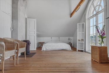 • Künstlerisch anmutendes Dachgeschoss mit Master-Schlafzimmer und großen Glasfronten zum Meer – magisch am Morgen wie am Abend