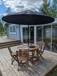 Perfekt för barnfamiljer med stor gräsmatta och studsmatta samt nära till skog, strand med brygga. Hundrastgård finns. Välkommen hem!