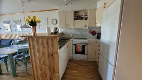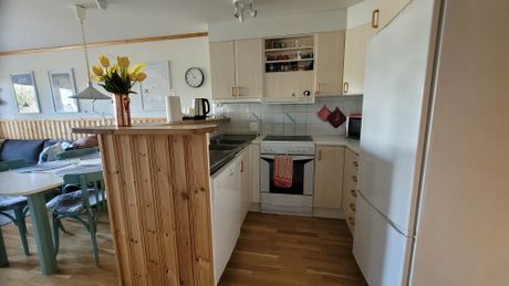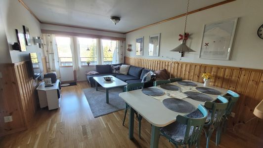 Mycket hemtrevlig lgh. med 3 sovrum á 2 bäddar, vard.rum med hörnsoffa, kabel TV, internet, matbord för 6 pers. Barkök med diskmaskin och mikro. Bastu, inglasad entré med vallningsställ, golvvärme i hall och badrum m.m. Tvättstuga i gårdshuset samt bilplats med motorvärmare utanför entrén. Skidåkning till och från backen direkt från stugan. En fantastisk utsikt mot Åreskutan.