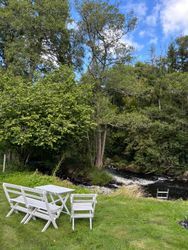 Willkommen bei Smes außerhalb des Dorfes Solberga! Eine komfortable Unterkunft in der Nähe des Waldes und des Wassers mit der Möglichkeit, in den Stromschnellen neben der Hütte zu schwimmen.