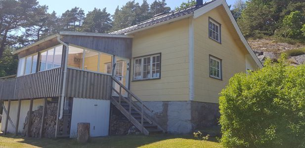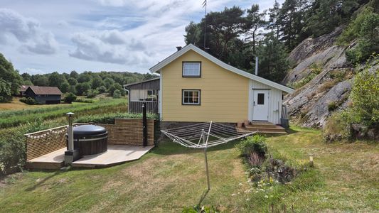 In a remarkable nature you find the holiday home ”Valön” . Situated in the fjord “Stigfjorden“ between the two famous islands Tjörn and Orust you find Valön. The island is a nature reserve and during the summer both cows and goats graze on the fields. The cottage is in a little valley next to a big beautiful meadow and only 450 meters away from a bating place. The house has 3 bedrooms and terrace that is in the sun most of the day. Part of the terrace is with glass, perfect for eating outdoors in the evening and when a barbeque.