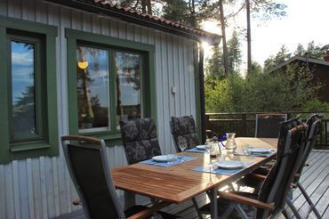 A charming house with a seaview, situated in the heart of the Archipelago and close to Stockholm city. Summer activities such as bathing, tennis and golf are around the corner. The cozy house is a retreat in all weathers, with the Swedish standard of living at its best. The common area has a fireplace and the dining room ready for ten people with a magnificent view of the water. There are terraces on each side with a promise of late hours sunlight for barbecues. The house has a masterbedroom, a room with two beds and a guest room with a king size bed. There is also a bedsofa in case visitors amount to 8 people. The bath and amenities are neat, there is a wachine machine and dishwasher together with newer appliances.