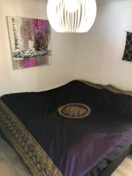 Det ena sovrummet har en ny dubbelsäng och bra med förvaringsmöjligheter. Det andra har en våningssäng samt en enkelsäng. På tomten finns en friggebod med 4 sängplatser.