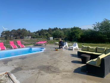 The house is fully equipped with new and modern furniture two bathrooms with both shower and bathtub. Kitchen with convection oven, ceramic hob, dishwasher, microwave. TV and broadband via fiber. In the living room are tiled and the whole ground floor is the floor heating. The house has three bedrooms and with two extra beds gives it 8 beds.