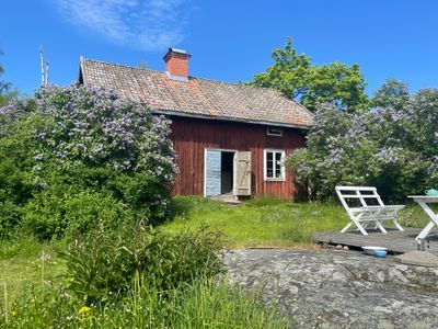 Idyllic completely private cottage on a scenic island in the archipelago on Norra Finnö, walking distance to the sea. Large, private secluded plot with fire heated tub, patio with table and chairs and barbecue area and a small gazebo on the hill above the plot where you can sit for evening sun. Wood stove in the kitchen and fireplaces in all rooms.