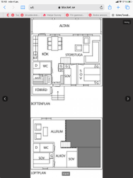 Nedre plan består av hall, torkrum, badrum, bastu, kök, matplats för 6-10 personer och vardagsrum med TV och öppen spis. Nedre plan har två sovrum, ett med dubbelsäng och ett med våningsäng. Övre plan består av vardagsrum med TV, badrum, ett sovrum med våningsäng och en sovalkov med dubbelsäng. Totalt 7-9 sovplatser. Cirka 80 m2. Fritt Wifi. Byte lö-lö.