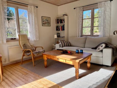 The cottage is located by the Morlanda nationalpark, with hiking trail that goes past Sven's Altare, Slottsberget and Galgeberget. Håltavatten (lake) is 500 m from the cottage. Possibility to pick chanterelles and berries in the forest.