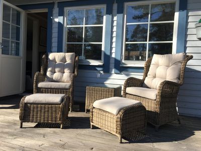 Från huset och altanen är det utsikt mot Ålands hav och inloppet mot Grisslehamn.