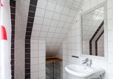 Apartment above garage with good sofa bed in open planned room together with well equipped kitchen. Fresh WC with shower. Private patio down stairs.