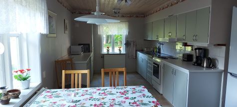 Trevligt hus med 6 bäddar, 2 stora rum och kök, dusch,WC,tvättmaskin, spis,kyl,mikro,TV, utemöbler och grill.