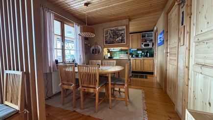 Stugan på 74 kvm har 6 bäddar fördelat på 3 sovrum. Storstugan har öppen planlösning mellan kök och allrum med braskamin. Bredband och TV med 2st HDMI kablage (vanlig + micro).
