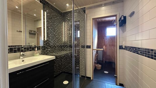Kommunalt vatten och avlopp, nyrenoverat badrum, bastu och toalett. Bra förvaring för kläder och skidutrustning.
