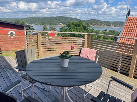 Welcome to this modern and well-designed house on the hill in Svanesund, Orust – a place where tranquility meets proximity to the sea. Here you stay on a fully fenced terrace, perfect for both children and dogs, with several sunny seating areas and a lovely view over the fjord. The house is tastefully furnished and offers up to 6 beds (4+2) divided into one bedroom with a double bed and a loft with two single beds and a sofa bed. The bright kitchen has everything you need for a comfortable stay, including a dishwasher, microwave, stove, oven, and fridge/freezer. On the entrance floor, you’ll also find a fresh bathroom with shower and washing machine. The loft has a sofa, TV with Apple TV, and speakers – an ideal spot for cozy evenings. Outdoors, you can enjoy terraces in three directions, barbecue evenings in the sunset, and children can play safely in the fenced garden. The house is located in a quiet and family-friendly area at the end of a cul-de-sac – only 400 metres from the sea and bathing area, and within walking distance to a playground, pizzeria, and grocery store.