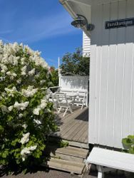Lovely and light lower floor in a Villa at Donsö in southern location on the island on a deadend road with bathrobe distance to beach and cliffs with ladder, for the whole family, about 100 mts to the sea.