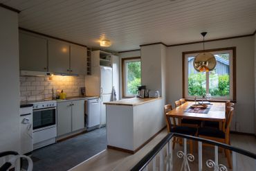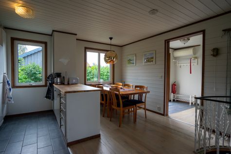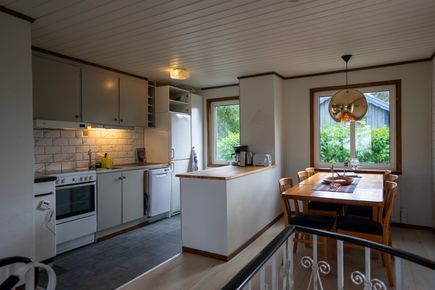 Welcome to this charming cottage in Röra Grönvik on Tjörn, a true summer paradise just 250 meters from a natural beach, jetty and diving platform. The house is set on a large sunny plot with plenty of space for play and relaxation. Enjoy your morning coffee on the patio or unwind in the glazed conservatory with views of the garden. The house accommodates up to six people and offers three bedrooms: one with a double bed, one with bunk beds and one with a single bed. There is also a bathroom with shower and toilet, a well equipped kitchen with dishwasher, and two living rooms with sofas, TV and fireplaces. The cozy kitchen stove and the two fireplaces create a warm atmosphere all year round. Downstairs you will find an additional living room and a laundry area. The spacious garden invites you to relax or play a game of kubb or badminton. In the evening, enjoy the beautiful sunset over Stigfjorden. The nearby natural beach is calm and mostly visited by locals, perfect for swimming or crab fishing.