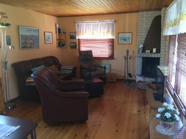 I allrummet finns öppen spis, TV med kanalerna 1, 2 och 4. Även en bäddsoffa.