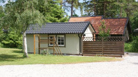 Stuga med 2 enkelbäddar, trinettkök, enkel köksutrustning såsom micro, kaffebryggare, brödrost, tekokare. Toalett och handfat. TV med endast markbundna kanaler. Wifi finns. Trädäck med utemöbler. Grill finns. Utedusch under tak med varmt och kallt vatten i direkt anslutning till stugan. Stugan ligger på samma tomt med en större stuga.