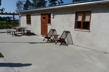 restaurant/hotel. From the 160m² spacious patio with a glimpse of the sea you can enjoy fantastic sunsets. Both houses are of high all year round standard and built in Gotland style.