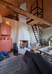Här bor ni i ett bulhus, med ett sovrum med våningssäng, sovloft med 2 sängar(brant trapp), pentry med gasolspis, ugn/micro, kyl/frys, utekök med bra arbetsytor, diskbänk, bänkdiskmaskin, välutrustat.