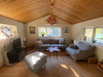 Mysigt hus med åretruntstandard samt lummig trädgård, nära skog och hav. Huset hyrs ut veckovis men gärna under en längre sammanhängande period.